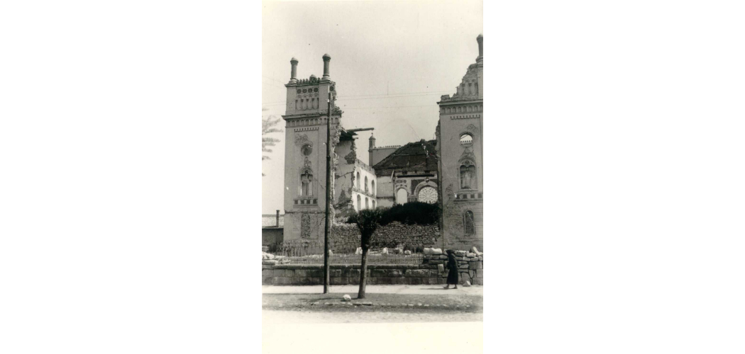 A visszavonuló németek által felrobbantott balassagyarmati zsinagóga, fotó, 1945