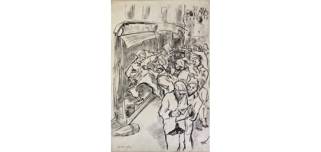 Áldor Péter: Az első újság, tus, papír, 1946