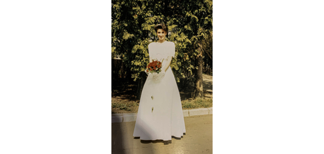 A megkerült ruha: „24 év után újra az enyém! Simonovics Ildikó szenzációs projektjének köszönhetően vissza tudtam vásárolni a ruhámat. Az én ruhám története attól érdekes, hogy az általam preferált olasz tervező ruhája sajnos nem volt elérhető számunkra akkor még. Ezért a férjem Dr. Segatto Emil, aki szenzációsan tud szabni/varrni is, tökéletesen lemodellezte a ruhát, beszerzett hozzá mindent és egy varrónő közreműködésével megvarrták nekem. Kétrészes, enyhén fényes, vastag selyemből készült, rövid, hátul záródó bolero jellegű felsővel, alján és ujján kézzel készített olasz csipke.