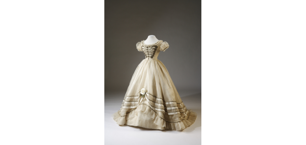 Magyar Nemzeti Múzeum Textilgyűjtemény. Az öltözet a gyűjtemény legrégebbi esküvői ruhája.