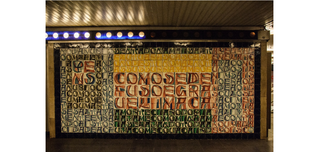A Deák téri metróállomás falburkolatába illesztett ikonikus alkotás, João Rodrigues Vieira portugál képzőművész betűcsempékből álló műve – amelyen portugál költemények magyarra fordított és magyar költemények portugálra fordított részletei betűzhetők ki – szakszerű tisztítást követően eredeti helyszínén marad.