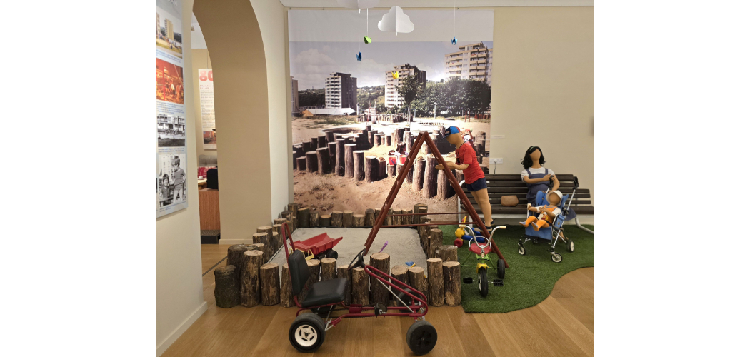 Az 1980-as évekre végleg kialakult a kétkeresős, kétgyermekes klasszikus családmodell. A nők munkába jártak, de rájuk hárult a gyermeknevelés és a háztartás összes gondja, miközben a férfiak részt vettek a második gazdaságban. Ezek a körülmények mérsékelték a gyermekvállalási kedvet és 1981-ben demográfiai fordulat következett be, csökkenni kezdett az ország népessége. A kiállítótérben egy lakótelepi játszótér jelenik meg, várandós kismamával és kulcsos gyermekkel a fókuszban.