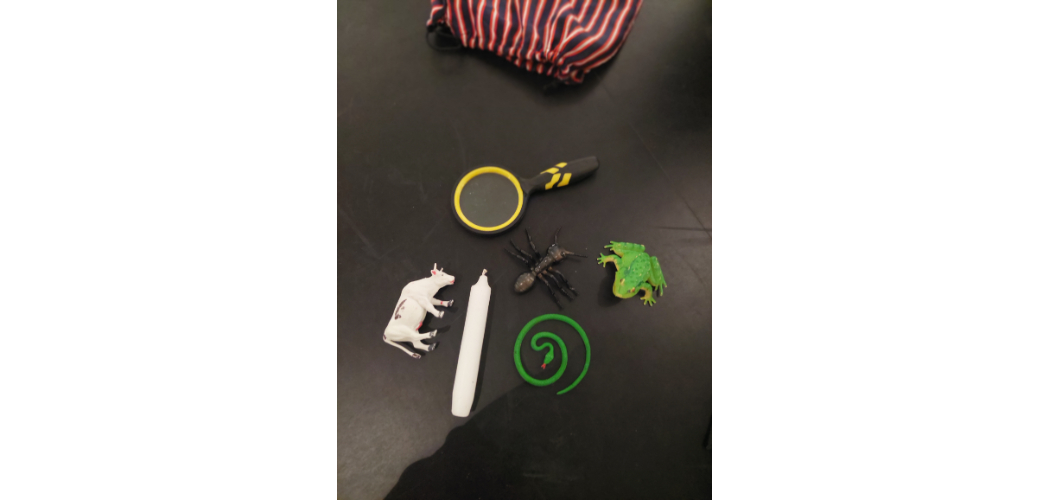 A gyerekek a foglalkozás alatt választhatnak egy-egy festményhez illő tárgyat, amit a kép elé a padlóra helyezhetnek
