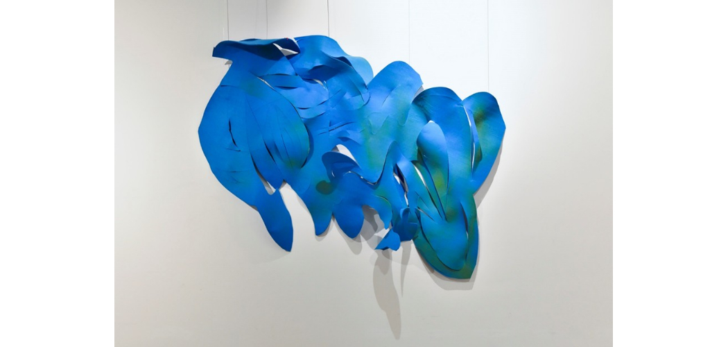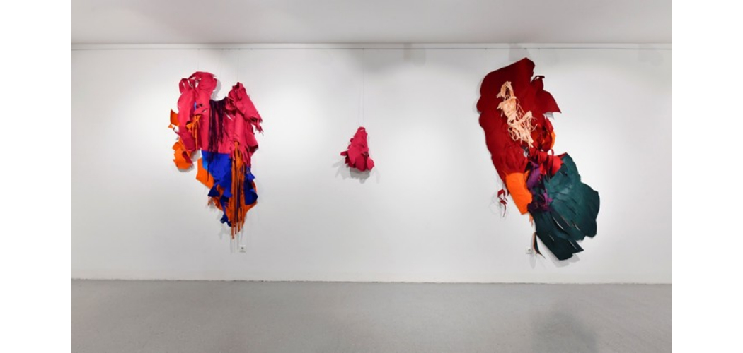 A filcanyagból készült, színes, absztrakt alkotások a plasztikusság mozgalmasságával szinte lemásznak a falakról. Ha fizikai alakjukban nem is, emlékezetünkben biztosan velünk tartanak a színek, formák, fények és árnyékok játékai.