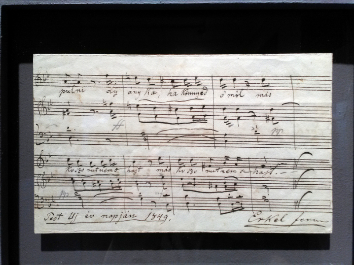 A Kincsek őrzői című időszaki tárlat természetesen ezekről az esztendőkről is közöl adatokat, főként az első kiállítótérben, ahol Mogyoróssy János adománylevele is megtekinthető. A látogató innen vagy az archeológiai felfedezéseknél folytatja szemlélődését; vagy bal felé halad tovább, és belép a helytörténeti terembe, amelynek középpontjába Erkel Ferenc huszonnégy gyémánttal ékesített aranykoszorúja került, amit 1888-ban, ötvenéves karmesteri jubileumára a nemzet ajándékaként kapott meg. A szépen csillogó értékes jutalom kalandos módon, vagy inkább a véletlennek köszönhetően egy páncélszekrény tetején vészelte át a szovjet csapatok gyulai műkincsrablását a második világháborúban. Azóta hét lakat alatt őrzik. A nemzeti ereklye mellé ezúttal a Bánk bán egyik kéziratrészlete és az a kis zenemű került, amit a zeneszerző Marczibányi Mária úrhölgy emlékkönyvébe jegyzett be 1849 első napján, és amelynek megszerzéséről nemrég számoltunk be olvasóinknak.