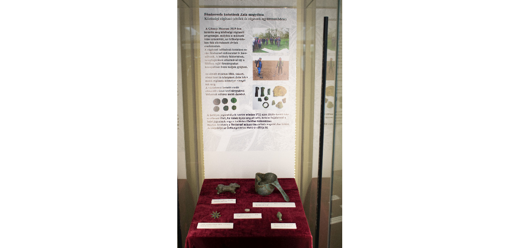 Hobby és hivatásos régészek közös munkájának köszönhetően számos értékes őskori, római kori és középkori lelet került elő a közelmúltban a Zala folyó menti területekről. A lelőhelyek kutatása során fémkereső műszereket is használnak, így a földben rejlő tárgyakat sokkal könnyebben meg tudják találni. Ezekből a leletekből mutatnak be a közönségnek néhány szép darabot: egy bronz lószobrot a 4. századból, egy Kr. e. 29-27-ből származó ezüst dénárt, egy 2-3. századi díszített fibulát, egy 1. századi bronz serpenyőt és egy Priapos szobrocskát a 2. századból.