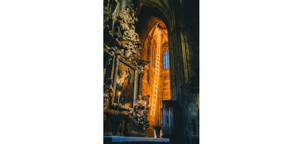 Billi Thanner világító installációja nagypéntekről nagyszombatra virradóra jelent meg a Dom-ban és azon kívül, a Südturm-on, tehát a székesegyház déli tornyán a remény szimbólumaként. A 33 fok a 33 erényt jelképezi, úgy mint a figyelmesség, szerénység, hála, diszkréció, kitartás, nagyvonalúság, odaadás, udvariasság, őszinteség, türelem, igazságosság, jószívűség, együttérzés, tisztelet, hűség, bátorság, bölcsesség, szabadság, összetartás, stb. A művésznő az élet értelmét is próbálta megjeleníteni alkotásával, a folyamatos emberi próbálkozást, ahogy sokszor „kilépve önmagunkból” próbálunk értelmet adni életünknek. Ahogy fogalmazott: „Az égi létrámmal reményt szeretnék adni, azt szeretném erősíteni az emberekben, hogy senkinek nincs oka aggodalomra, de ez gyakran csak akkor válik számunkra érthetővé, ha a legfelső fokokon állunk.”
