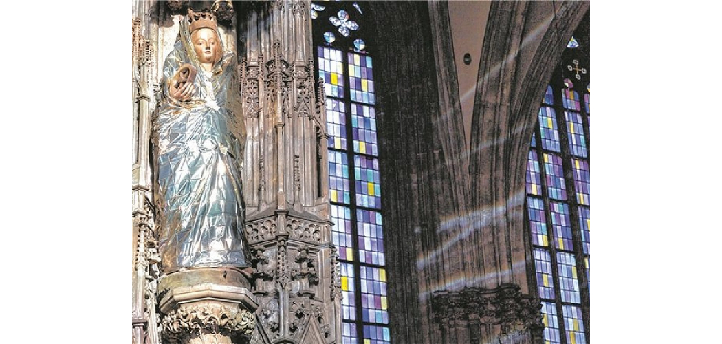 A Dom hatalmas üvegablakain beáramló, évszakonként és napszakonként változó fény játéka önmagában is lenyűgöző; ahogy a Nap sugarai elidőznek az oszlopszentek valamelyikén vagy megpihennek a Schutzmantelmadonna köpönyege alatt biztonságra lelt alakok arcán – ezzel a látvánnyal nem versenghet egy „művészi-művi” installáció sem. Ez a Stephansdom valódi csodája.