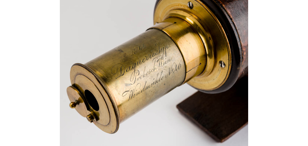 A foglalat elülső részén, a 15,5 mm átmérőjű lyukdiafragma előtt, egy, a központi zár szerepét betöltő, elfordítható kis fémajtó található. A foglalat felirata: No 66 Daguerreotyp; Prokesch Wien; Windmühle No 46. Az objektív készítője, Wenzel Prokesch a 19. század első felének neves optomechanikai gyártója és forgalmazója volt, halála után a Windmühle, Kothgasse 46. szám alatti cégét 1861-től az 1834-től vele dolgozó Karl Fritsch vette át.