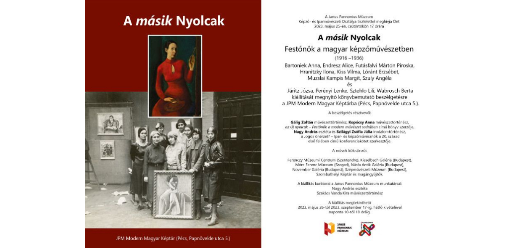 A másik Nyolcak – Festőnők a magyar képzőművészetben (1916-1936) elnevezésű kiállítás – Bartoniek Anna (1896-1978), Endresz Alice (1899-1947), Futásfalvi Márton Piroska (1899-1996), Hranitzky Ilona (1889-1980), Kiss Vilma (1885-1943), Lóránt Erzsébet (1898-1963), Muzslai Kampis Margit (1898-1981), Szuly Angéla (1893-1976), valamit Járitz Józsa (1893-1986), Perényi Lenke (1892-1970), Sztehlo Lili (1897-1959) és Wabrosch Berta (1900-1977) alkotásaival – 2023. szeptember 17-ig látogatható, hétfő kivételével naponta 10-től 18 óráig.