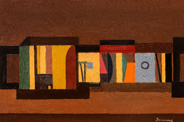 Barcsay Jenő szinte képről képre kísérletezett a tér és a forma viszonyával, az arányok és a kép struktúrájával. A látvány precíz, aprólékos tanulmányozásával művészi témájának fókuszába egyre inkább Szentendre városképének igéző részletei kerültek. Olajképein a kontúrok által felépített konstrukciót felváltotta a színfoltokból és mértani formákból való képszerkesztés. A kiállításon végigbarangolhatunk a ritmikus szerkesztőelv, a drámai színhasználat és az egyre határozottabb absztrakció szintézisére törekvő életművön.