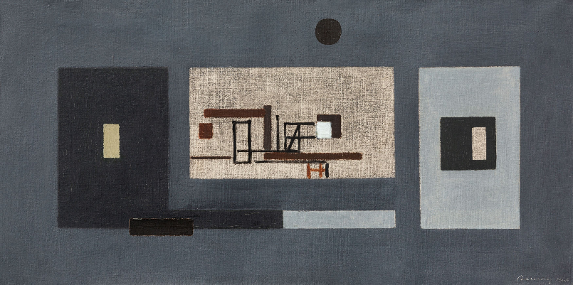 Barcsay Jenő: Szürke kép, 1966, 35 × 70 cm, olaj, vászon
