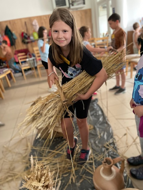 Az aratás-cséplés-kenyérsütés folyamata mellett eszközök –, használatuk – és elnevezésük megismerése, a közösségi munka fontossága, közmondás-tartalom eredet-megismerése, tevékenység, eredmény, öröm, humor, késztetés… , a gyerekeknek felépített mesei keretbe szerkesztett program mellett a résztvevő felnőttekre is oly annyira hat, hogy felnőtt csoporttal visszatérnek csapatépítő kenyérsütésre.