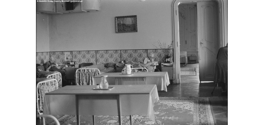 Szociális otthon szobája a királyi lakosztályban. Fotó: Suzanne Nagy Kirchhofer, 1986. (A Gödöllői Királyi Kastély Múzeum gyűjteményéből)