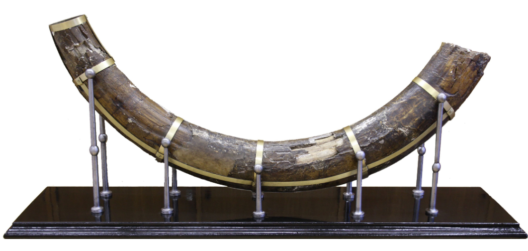 A „pécsi mamut” restaurált jobb oldali agyara, eredetileg Rihmer László készítette, a restaurálást Katona Lajos muzeológus (Magyar Természettudományi Múzeum – Bakonyi Természettudományi Múzeum) végezte (Fotó: Katona Lajos).