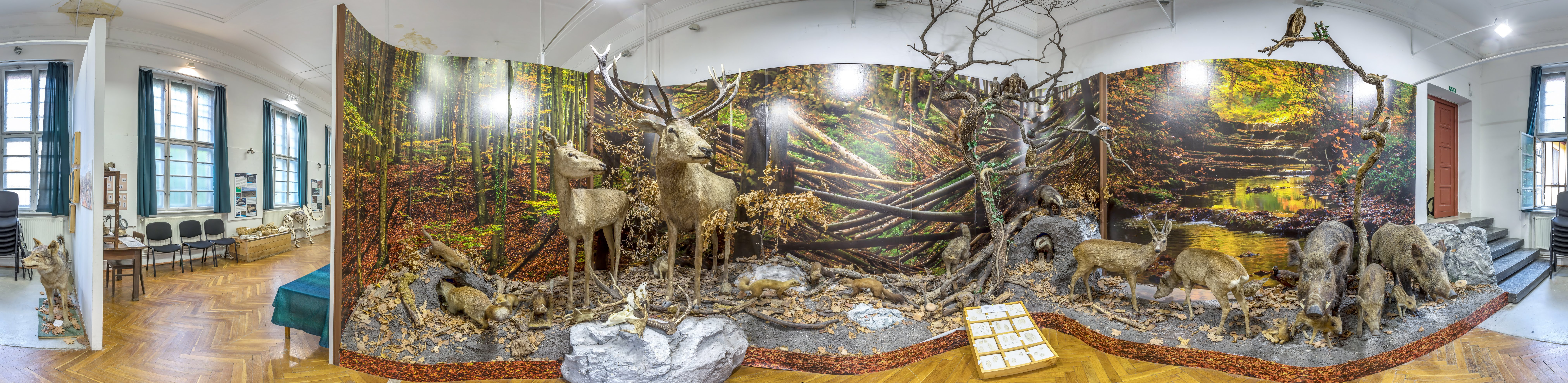 Panoráma kép a Janus Pannonius Múzeum Természettudományi Osztály állandó kiállításából 2016-ban