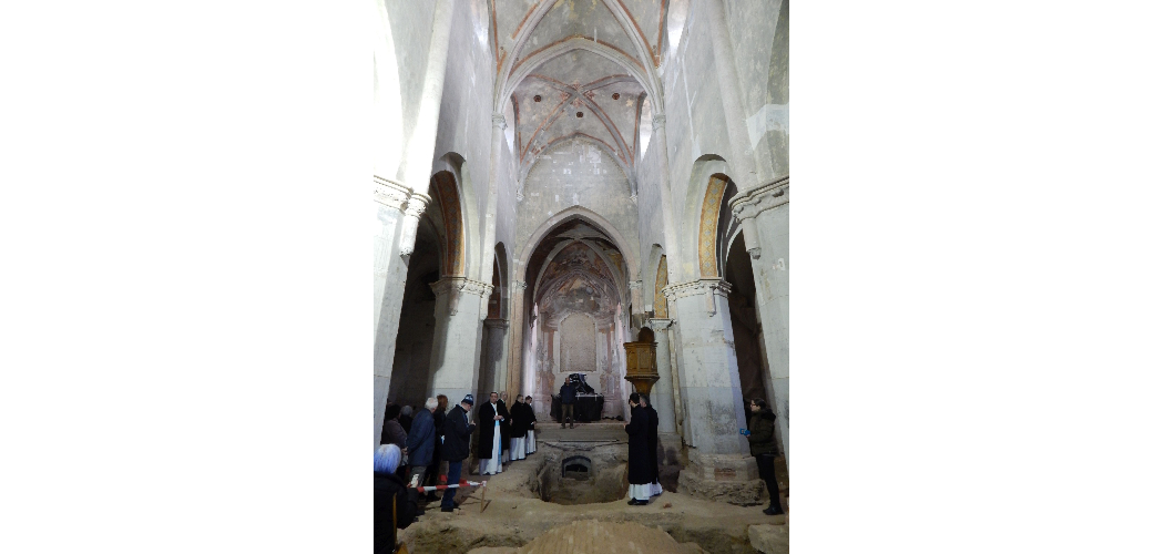 Több jelentős építéstörténeti kérdést sikerült tisztázni, hiszen az oltártól balra az eredeti 13. századi padozat téglái kerültek elő. Ráleltek az alapító Dénes bán sírhelyére, s habár őt magát nem találták meg, de rábukkantak egy asszonyra, akinek jobb lábszárcsontjára fektették gyermekét egy másodlagos temetkezés során. Ez vélhetően a 18. században történhetett, mert abból a korból származó textildarabokat találtak. A sírt a jelek szerint minden bizonnyal felbolygatták.