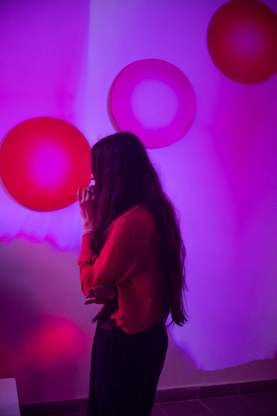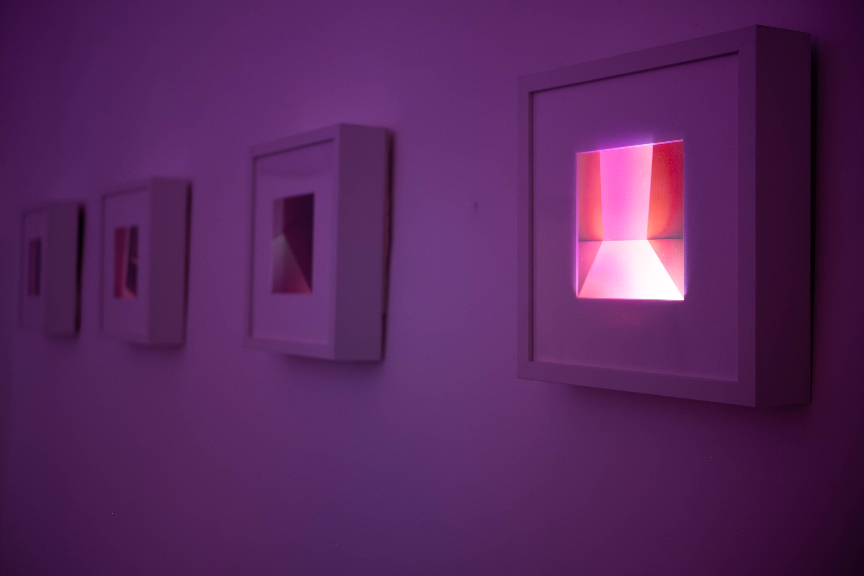 A kiállított fotósorozat a Pink Void nevet viseli, a void magyarul űrt, ürességet jelent. A fényképek liminális tereket ábrázolnak, olyan átmeneti határállapotot, melyek átvitt értelemben, csak absztrakt módon értelmezhetők. A liminalitás a kör alakú festményt is jellemzi, a kép szélén intenzív határokat szab a piros szín, amely a kör közepéig nem ér el, a belső rész fehéren marad. Ez a mű is a korábban említett űrre asszociál, amely határokon kívül esik és nem látni, hogy hová tart.
