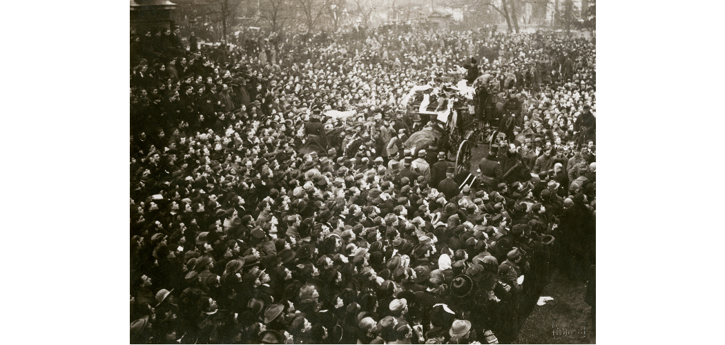 A gyászoló tömeg a Múzeumkertben, 1919. január 29. (MNM Történeti Fényképtár)