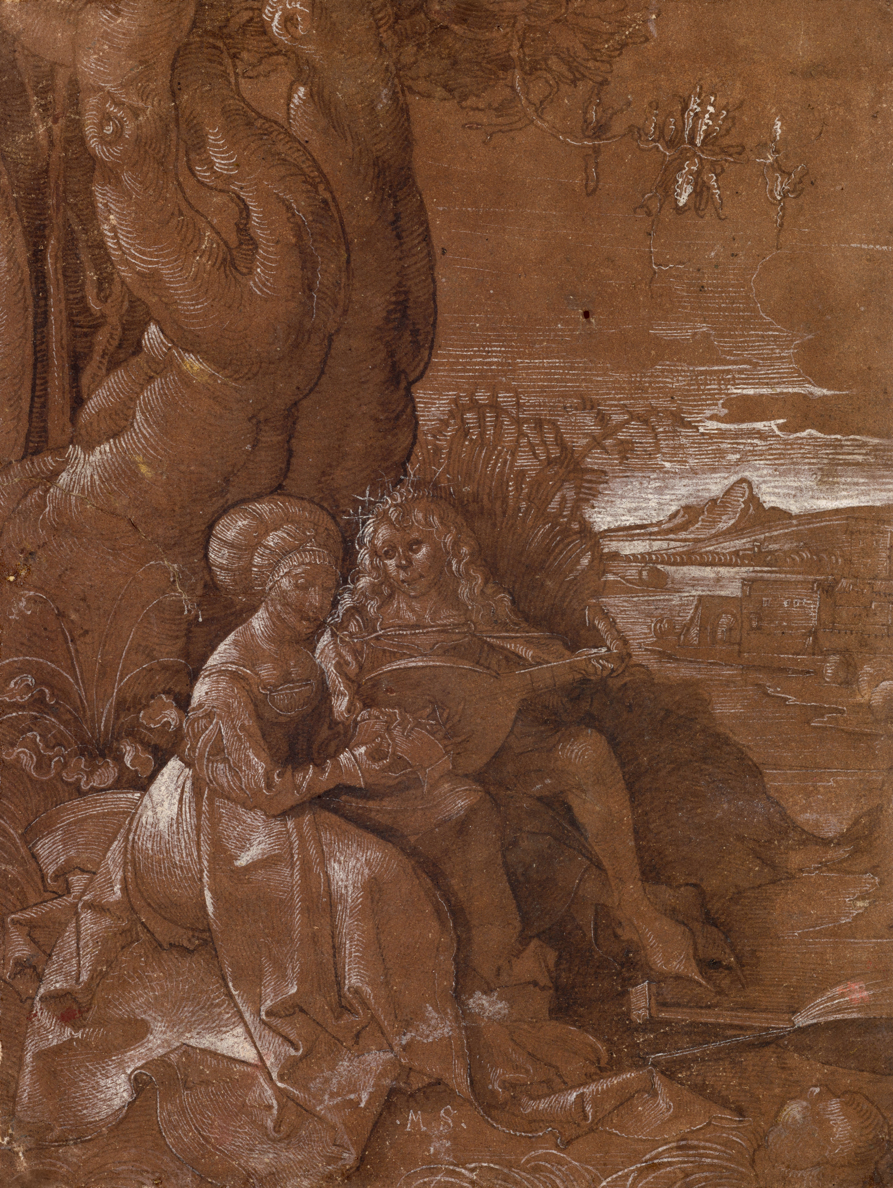 A következő szekcióban MS mester rajzait tekinthetjük meg, amelyek közül több újonnan azonosított mű is szerepel. Külön figyelmet érdemel a párizsi Louvre-ban őrzött, zenélő szerelmespárt ábrázoló rajz, amely az egyetlen ismert alkotás, ahol a mester saját monogramját is feltüntette. Az ezen a lapon megfigyelhető technika és stílusjegyek alapján került meghatározásra további hat rajz, mint MS mester alkotás, melyek többsége gyakorlólap lehetett. A kiállítás ezen része kiemeli a mester kapcsolatát Albrecht Dürerrel és a nürnbergi művészeti közeggel, amely jelentős hatással volt stílusára és technikájára, nem egy rajz számos részlete a német művész metszeteiből és rajzaiból köszön vissza ránk.