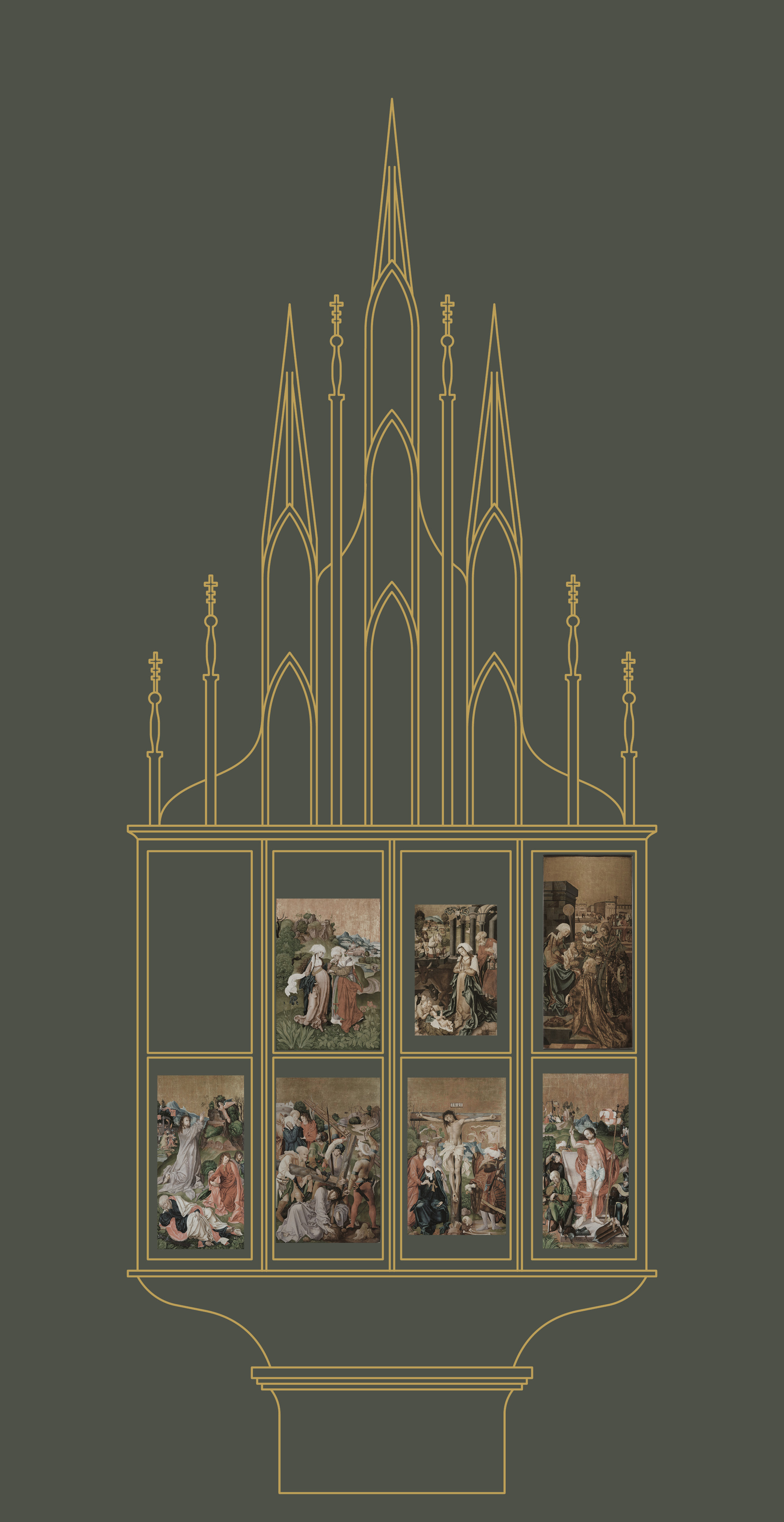 A történeti bevezetőt követő szekció a kiállítás központi elemét, a selmecbányai Szent Katalin-templom egykori főoltárának hét fennmaradt táblaképe, köztük a híres Mária látogatása Erzsébetnél (Vizitáció) című alkotást állítja fókuszba. Ezek a művek először láthatók együtt ilyen teljességben, mely különleges élményt nyújt a látogatóknak, hiszen a művek a legkülönbözőbb helyszínekről kerültek elő, a Vizitáció a tópataki plébánia padlásáról, a Jézus születése a hontszentantali templomból, a négy passiójelenet a szentantali kastély hercegének gyűjteményéből, a Királyok imádása műkereskedelemből, az életnagyságú szobrok pedig Selmecbányáról. A táblaképek nemcsak művészeti értékük miatt jelentősek, hanem azért is, mert általuk betekintést nyerhetünk a középkori vallásos élet mindennapjaiba, az akkori emberek hitébe, a Felvidék bányavárosainak múltjába.