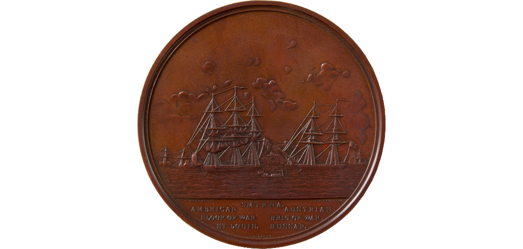 A Duncan N. Ingraham kapitánynak adományozott Kongresszusi Aranyérem bronz leverete, amelynek előlapján a szmirnai kikötőben egymással szembenálló két hadihajó – az amerikai St. Louis és az osztrák Huszár – látható.