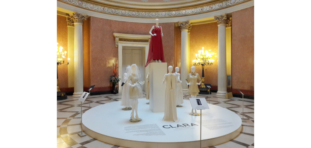 A Kiscelli Múzeum templomtere Budapest egyik impozáns és egyben markán kiállítóhelye. Így magában hordozza annak a veszélyét, hogy az adott tárlatot indokolatlanul felmagasztalja, szakralitásával többlettartalmat adjon neki, vagy pedig elnyomja, rátelepedjen arra. Ezen a vékony jégen magabiztosan és kiválóan halad előre Szatmári Judit Anna kiállítási koncepciója, történetmesélése. A belépőtérben, az apszisban, a helyszínt és a benne kiállított anyagot remekül összefűzi a bevezető, amely megismerteti a fény, a ragyogás szakrális jelentőségét, s az ebből következő helyét és szerepét kultúránkban. Nagyon jól, közérthetően és látványosan tematizálja a divattörténet nagyobb állomásait, amelyek során a szakralitástól eljutunk napjaink olcsó tömegtermékeihez. Ezt segíti a bátran és látványosan megtervezett installáció, amely még szorosabbra fűzi a helyszín és a koncepció egységét. A teremtés fénye, a fény és a fényűzés fogalmaiból vezeti le, könnyen megjegyezhetően és jól áttekinthető térelrendezéssel, öt nagy témakörre bontva az anyagot. A jól átgondolt kurátori koncepció és a találó látványtervezés segít, hogy az ügyesen válogatott, látványos ruhákkal tartalmas kikapcsolódást és inspiráló élményt nyújtson széles közönségnek.