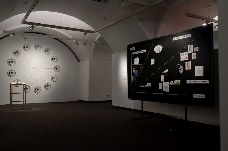 Egy-egy tárlatvezetés hallgatói oldalról egyfajta kulturális antropológiai kutatássá avanzsálódik, mikor hallgatva a tárlatvezetőt részt vevő megfigyelőként vagyunk jelen. Ismeretlen népcsoporttá tesszük a tárgyakat, majd felépítjük a történetüket azzal, hogy ott vagyunk közöttük. Óhatatlanul is kiválasztunk –szubjektíven- néhányat ami sokkal inkább közelebb áll a „kutatási témánkhoz”, mint az összes többi. Így reflektálva arra, hogy mi maradt meg a teljes egészből. Korábbi személyes találkozások és kiállítások miatt én Tranker Kata és Gosztola Kitti munkáját emelném ki. Tranker Kata Pannónia hármas halma a tudomány és teológia találkozását vizsgálja: hogyan illeszthető egymás mellé a biológiai evolúció és a teremtéstörténet. Az alkotás kiindulópontja egy szerzetesmunka: Lovas Elemér OSB (1889–1949) régészeti domborzati térképe, ahol a hármas halom és környéke egyfajta időn és téren túli helyként tűnik fel. Elsőre nem tűnik érdekesnek egy régészeti domborzati térkép, de Tranker Kata szemén keresztül látva „ugyanezt” a térképet egyfajta sci-fibe illő figurális megjelenítéssel máris máshogy kezdünk el kötődni Pannónia hármas halmához. Egyfajta láncszemet kínálva a látogató/befogadó számára a tér –idő – kontinuitás gondolati egységein. Összeköti a tegnapot és a jövőt és éppen csak egy pillanatra időzve a jelenben. Minden bizonnyal azért is érintett meg ennyire Tranker Kata papírmasé domborművekkel elmondott története, mert ebben az évben valósult meg egy önálló tárlata a számomra már ismerős figurákkal.