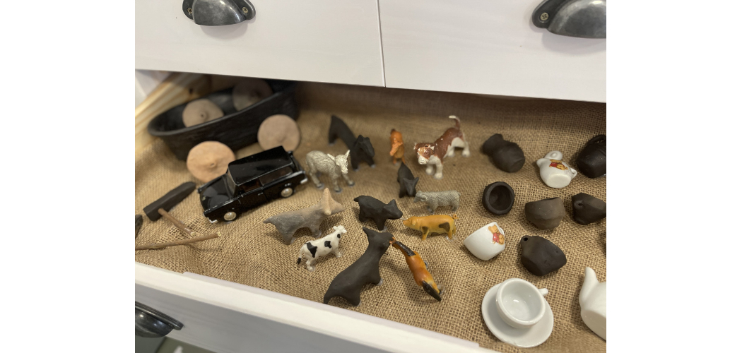 A kialakított relikviák a bronzkori leletek másolatai és az ezekkel párhuzamba állított mai megfelelői, használati tárgyak, szerszámok, evőeszközök, játékok, ékszerek.