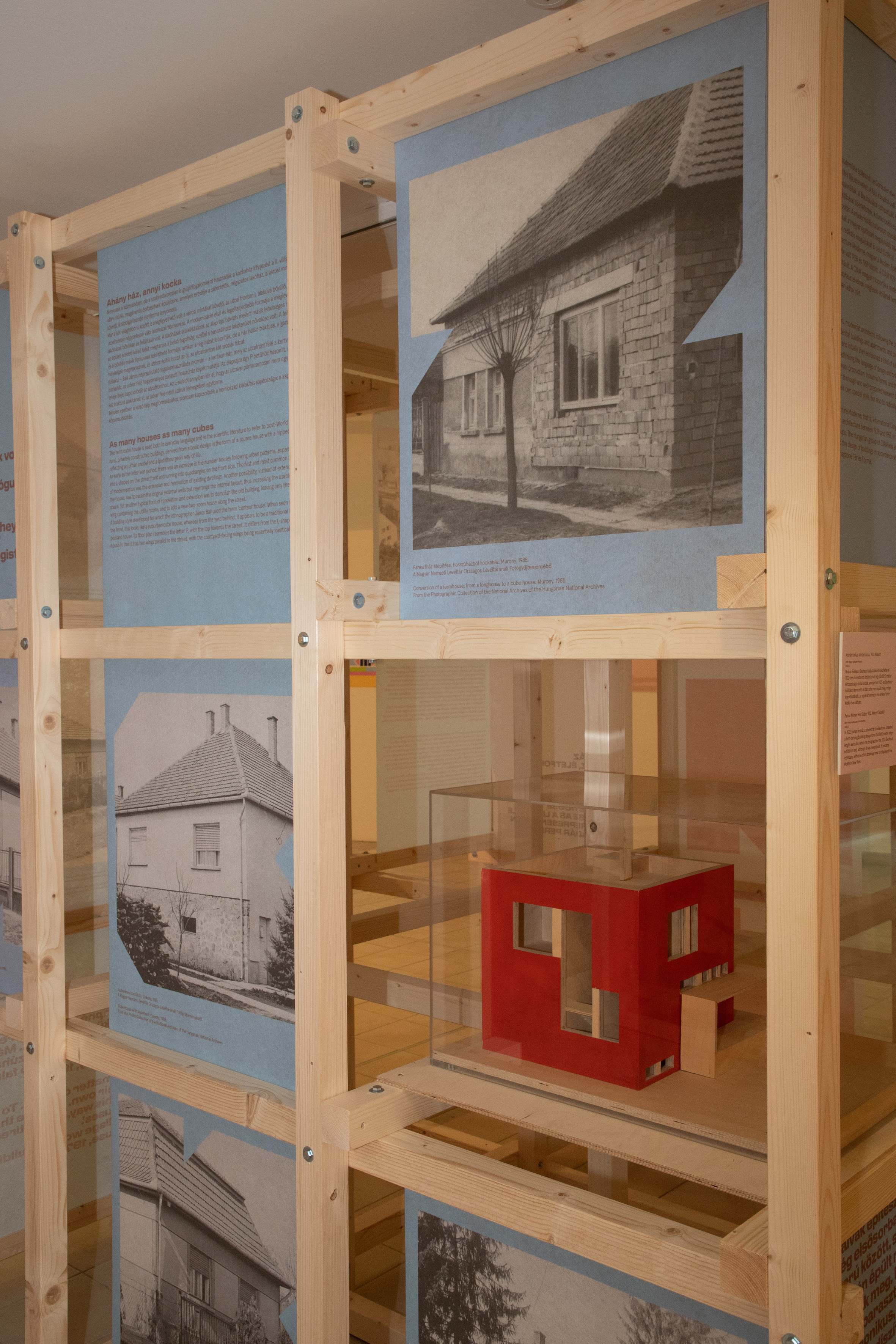 Amikor látogatóként beléptem a mintegy 100 m2 alapterületű, fehérre meszelt kiállítótérbe, első benyomásként nyilvánvalónak tűnt számomra a téma és a teremben alkalmazott installáció illeszkedése. Az egyszerű, natúr fenyővázas polcrendszer a látogatóra vetíti a kockaházak egyszerű megvalósíthatóságát, mint népszerűségének alapmotívumát. A kiállítás tartalmának megismerésekor átüt a célkitűzések gondolatköre, a forgatókönyv, a tervezés és megvalósítás egybevágósága. Az egyszerű térszervezés, a kiállítás kivitelezésének tárgyi és képi gazdagsága, a bemutatás sokrétű technikája önmagáért beszél.