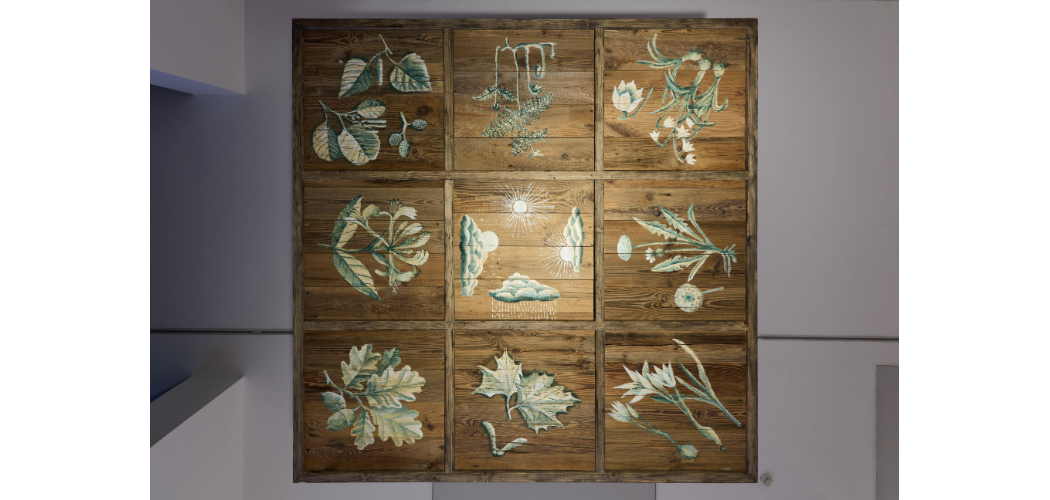 A kiállítás második nagy egysége a növényi szimbolika témája köré csoportosította az alkotásokat. Ebben a szakaszban felsorakoztatott művészek azt vizsgálták, hogy a hagyományos ábrázolásokat milyen módon befolyásolják napjaink környezeti problémái, mint a klímaváltozás, erdőirtás, árvíz, talajerózió és a kulturális változások. Talán ennél a tematikai egységnél a közös gondolkodás és a jövőnkért érzett cselekvő odafigyelés kicsit kevesebb hangsúlyt kapott. Helyette áttételesebb, filozófikusabb művekkel találkozhattunk, mint Kuzma Eszter Júlia Az ártatlanság érintése című munkája, amely a szimbólumok, kulturális kódok változását vizsgálta. A növényi mintákkal díszített, kézzel hímzett sátorban felállított varázsgömb színe a látogatók érintésére megváltozott. A vörös és fehér szín kulturális beágyazottságát és annak tájegységekkénti eltérést, az archaikus szimbólumrendszerek összetettségét és változását tapasztalhatta meg a látogató saját cselekvésén keresztül.