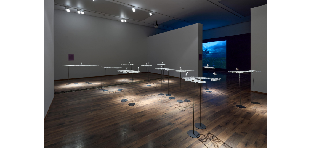 Kortmann-Járay Katalin és Mendreczky Karina Mirage című installációja hazai tájra, az Alföldre kalauzolta a látogatókat, továbbgondolva a hortobágyi délibáb jelenségét. Ahogy a vibráló hőség elmossa a határokat a valóság és a látomás között, úgy mosódik össze egy adott területen a táj a kollektív emlékezettel. A számos elemből álló installáció a természet ellenállóképességét és fajok közti kapcsolatot mutatja be, azt a rendszert, amelynek az ember, a hagyományok is szerves részét képezik. Hasonló szimbiózist tár fel Illés Zsófia Szonja Vadvízországa, amely videókon, festett textileken és bútorokon keresztül vizsgálja a közép-tiszai ártéri területet. Az installáció minden eleme a gazdálkodók évszázados ökológiai tudását és a népművészetet ötvözi a hagyományos természetközeli szemlélettel.