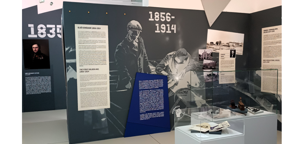 Az 1835-ben Gróf Széchenyi István által alapított gyár történetét egészen az 1991-es bezárásáig lehet nyomon követni. A kiállítótérben a kurátorok kronologikus rendben vezetik végig a látogatót a kezdeti időszaktól (1835–1856), az első virágkoron (1856–1914), a háborúk időszakán (1914–1938), a II. világháborún (1938–1945), a szovjet tulajdonba kerülés időszakán át (1945–1953) az utolsó, hanyatló időszakig (1980–1991).