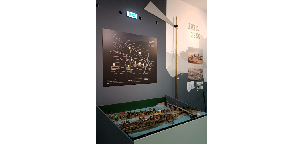 A gyártörténet és a történetmesélés fonalát fényképek és filmfelvételek illusztrálják, melyeket orientálódásképpen egy szellemesen kitalált interaktív idővonal egészíti ki. A horizontálisan mozgatható hajókerék segítségével a hajógyár 1835 és 1991 közötti időszakának legfontosabb eseményei között tudunk navigálni (Hajózzunk az időben!).