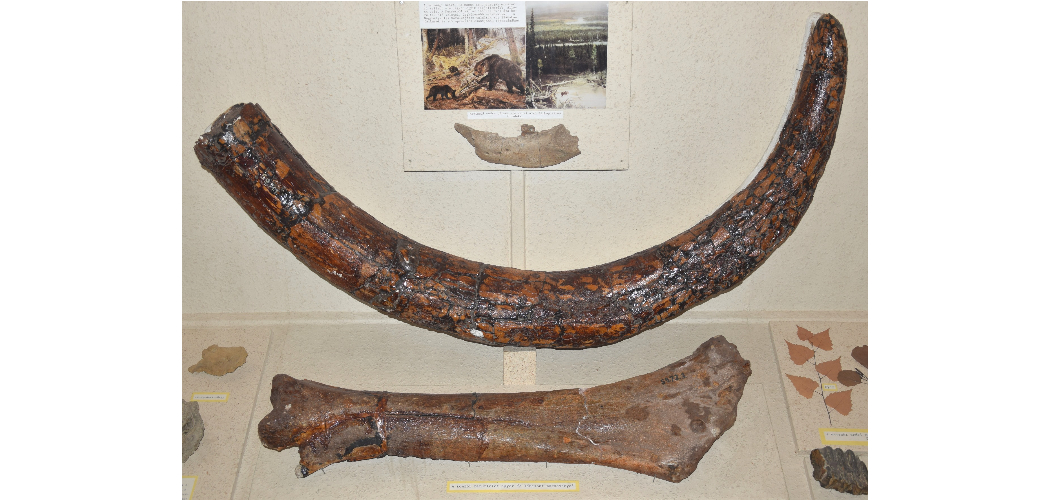 Az 1956-ban felfedezett komlói mamutlelet: agyar és combcsont - fotó: Dr. Henn Tamás