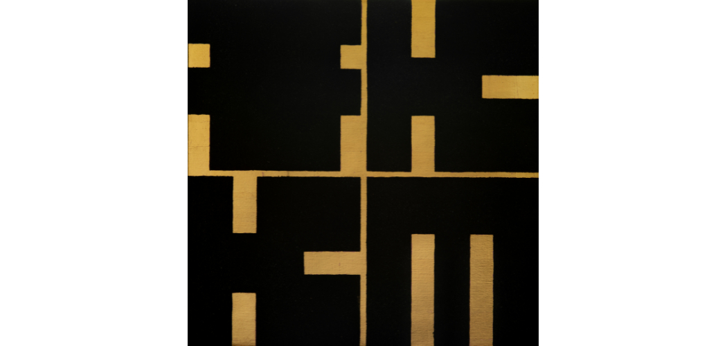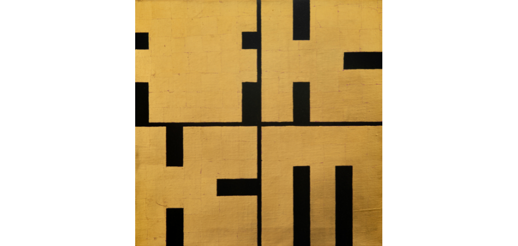 A kilencvenes években tehát nagy lehetőségekkel indult az önképét és új identitását kereső képtár. A kortárs kiállítások megrendezésére, nagyméretű installatív munkák bemutatására alkalmas kiállítóhely, a hazai szcénában egyedülálló Templomtér 1991-re megújult, lehetőséget nyújtva a következő évtizedben az országos szinten is kiemelkedő kortárs művészeti program megvalósítására. 1994-től Fitz Péter (1950) vezetésével a legfrissebb képzőművészeti törekvéseknek adott otthont a képtár, s ezek közé illeszkedett Trombitás Tamás 1996-os gyűjteményes bemutatója is. A sokféle médiumban (grafika, festészet, szobrászat, installáció, fényplasztika) alkotó művész munkáit a nyolcvanas évektől következetesen absztrakt formaképzés jellemezte, s miközben az avantgárd hagyományokból táplálkozó geometrikus megközelítés megmaradt, egyre inkább a betű, az írás kérdései foglalkoztatták. A kilencvenes években készített szigorúan négyzetes alapformájú festményei a betűk az aranyfüst és a fekete ellentétére épülnek, s a kis négyzetrácsot formáló arany lapocskák és a szimmetrikus, körkörös kompozíciók spirituális tartalmakat sugallanak. Az 1996-os képtári kiállítás katalógusában elsőként publikált Mandala című művön ez a kettősség, a szimmetria, szabályozottság, valamint az arany felületekkel az időtlen harmónia megragadásának törekvése együtt érzékelhető. A többi munkán – így az EMSE című festményen – a geometrikus alapformákká egyszerűsített betűket Trombitás négy részre osztott négyzetes felületen helyezte el, létrehozva egy letisztult, harmonikus, meditatív kompozíciót. Ezekkel a művekkel dolgozva Fitz Péter számára szinte magától értetődőnek tűnt, hogy Trombitás Tamást kell felkérni a Fővárosi Képtár logójának elkészítésére. Az FK–KM két grafikus változata a fekete alapon arany és annak inverzét mutató festmények alapján készült.