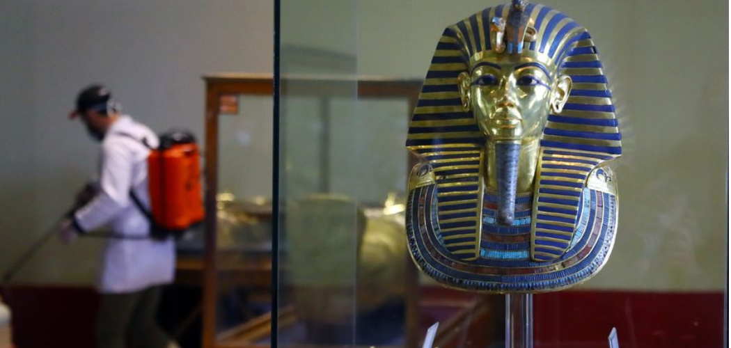 A kairói Egyiptomi Múzeumban fertőtlenítik a Tutanhamon-maszk termét