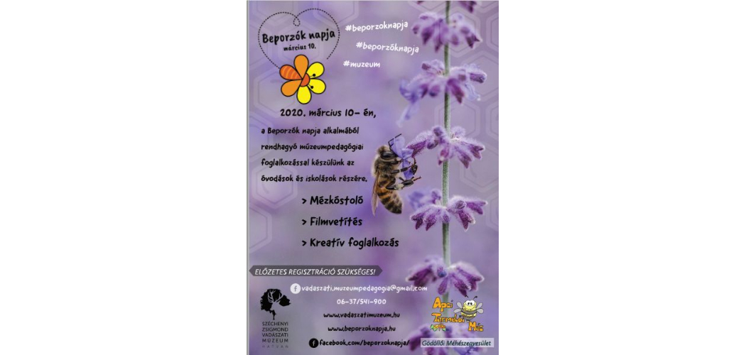 egész nap, óvodásoknak, iskolásoknak; meghívott méhészek előadásával, kézműves programokkal