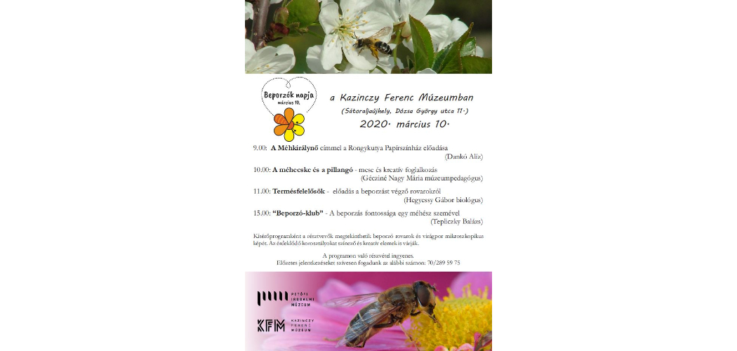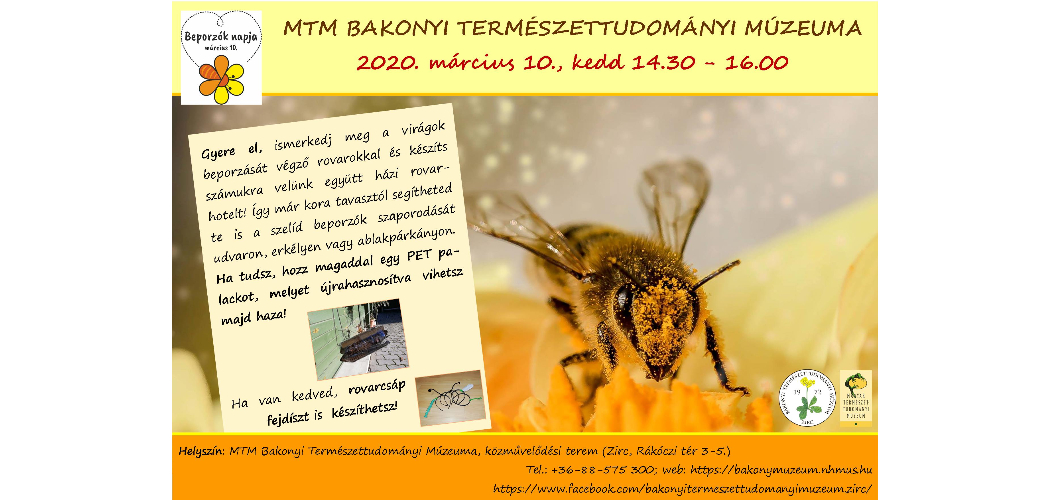 A Magyar Múzeumokban korábban közzétettünk egy felhívást, hogy minden magyar múzeum csatlakozzon a Beporzók napjához (március 10.). A mai napig 40 múzeum jelezte, hogy valamilyen extra programmal emlékezteti közönségét arra, hogy az emberiség számára fontos ökoszisztéma szolgáltatás szereplői, a virágok és a rovarok bajban vannak. Legalábbis remélhető, hogy nemcsak örömködés lesz egy-egy új témájú tárlatvezetésben, hanem elhangzik, hogy a Beporzók napját az hívta életre, hogy a nemrégiben tudatosult fontos természetvédelmi problémát a múzeum, a múzeumi kollégák komolyan vették.