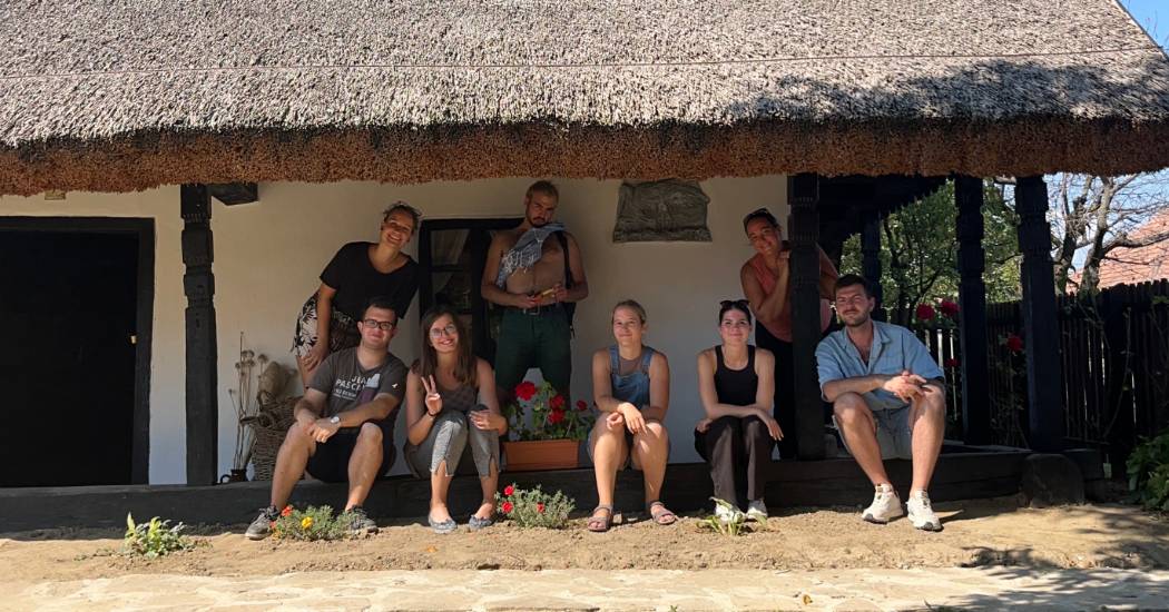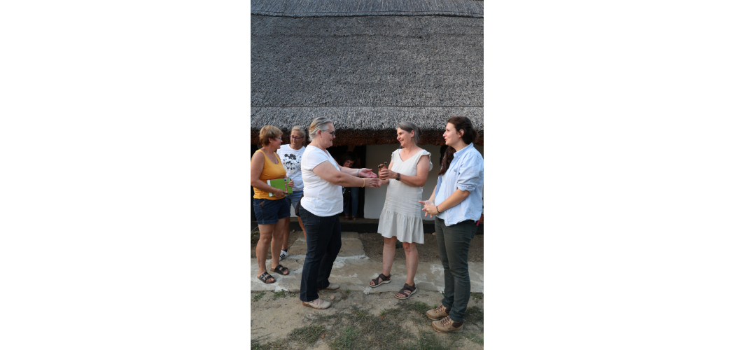 A résztvevők és a szervezők a tájház tornácán, Vörs, 2025 (Szathmáry Dorka)