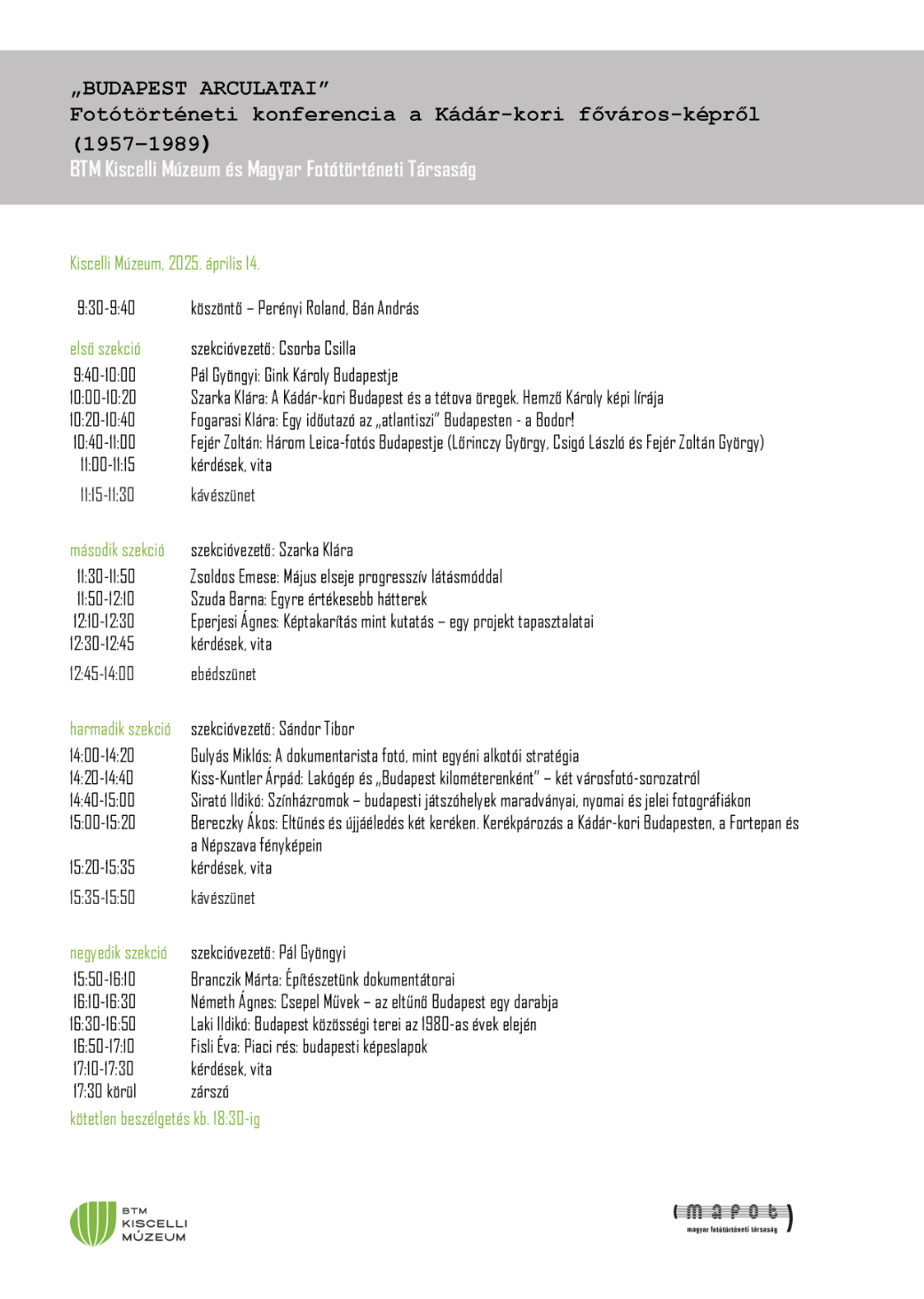 A konferencia a BTM Kiscelli Múzeum és Magyar Fotótörténeti Társaság szervezésében valósul meg.