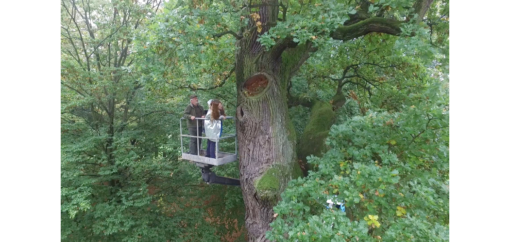 A Józef tölgy Wiśniowában, kutatás Jerzy Bralczyk dendrológussal, fotó: the County Center for Culture and Tourism, Wiśniowa