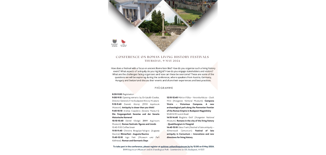 Regisztráció 2024. május 8. 12 óráig./To take part in the conference, please register at quittner.zoltan@aquincum.hu by 12:00 on 8 May 2024.
