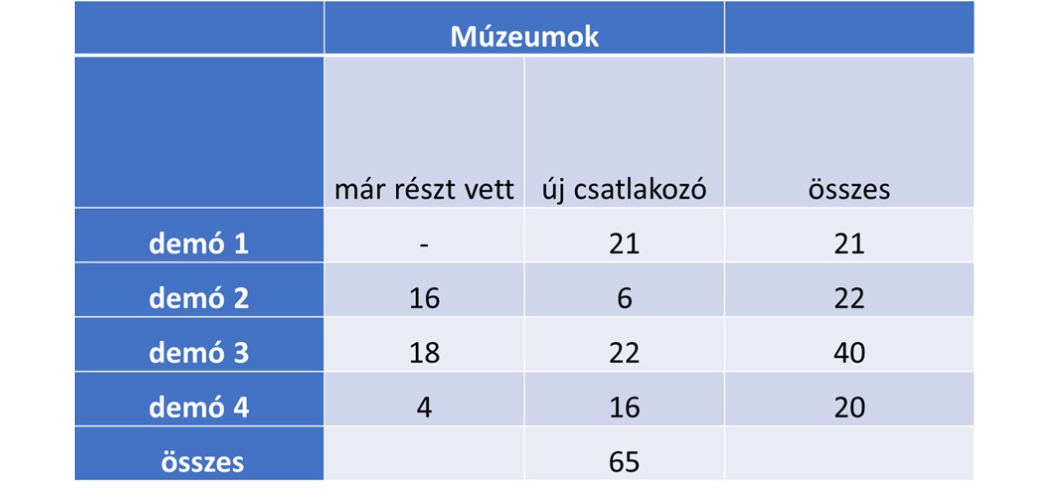 - Mi alapján vettek részt egy-egy DEMÓ-n a különböző múzeumok?