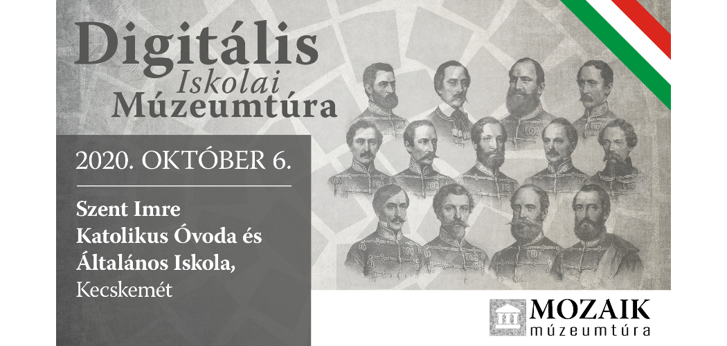 Forradalmian új módszerrel tart digitális iskolai foglalkozást a Mozaik Múzeumtúra és a Felelős Szülők Iskolája csapata az aradi vértanúk napjához kapcsolódó tematikával több száz iskolás számára. A 2020. október 2-án, 5-én és 6-án megrendezésre kerülő digitális múzeumpedagógiai nap három általános iskola diákjai számára kerül megvalósításra a virtuális térben, 12 múzeum bevonásával. A felsősök egész nap online kivetítés segítségével, élő, interaktív órákon vesznek részt.