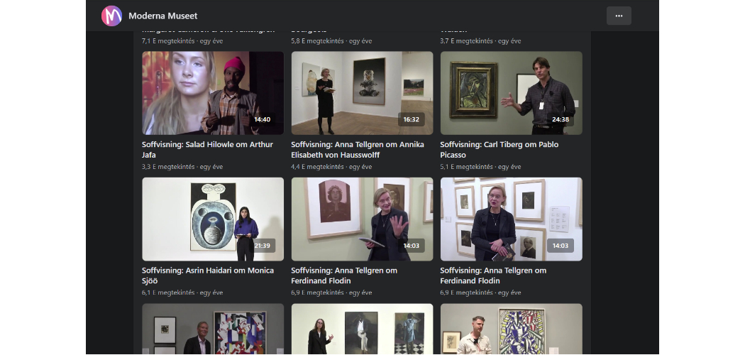 A Stockholm-i Moderna Museet rögtön a koronavírusjárvány megjelenésekor, 2020 márciusában indította el a sofa tours nevű projektjét. A kezdeményezésben kiemelkedő innováció nincs, hiszen egy szelfibottal rögzített okostelefonon rögzítik, a Facebook-on és Youtube-on pedig élőben közvetítik az informálisabb hangvételű múzeumi tárlatvezetéseket. A videók mindösszesen 10-25 perc hosszúak, tehát lényegesen rövidebb ideig tartanak, mint egy hagyományosnak tekinthető múzeumi tárlatvezetés, így a múzeumi tartalmak iránt kevésbé elkötelezett érdeklődőket is sikeresebben tudják elérni.