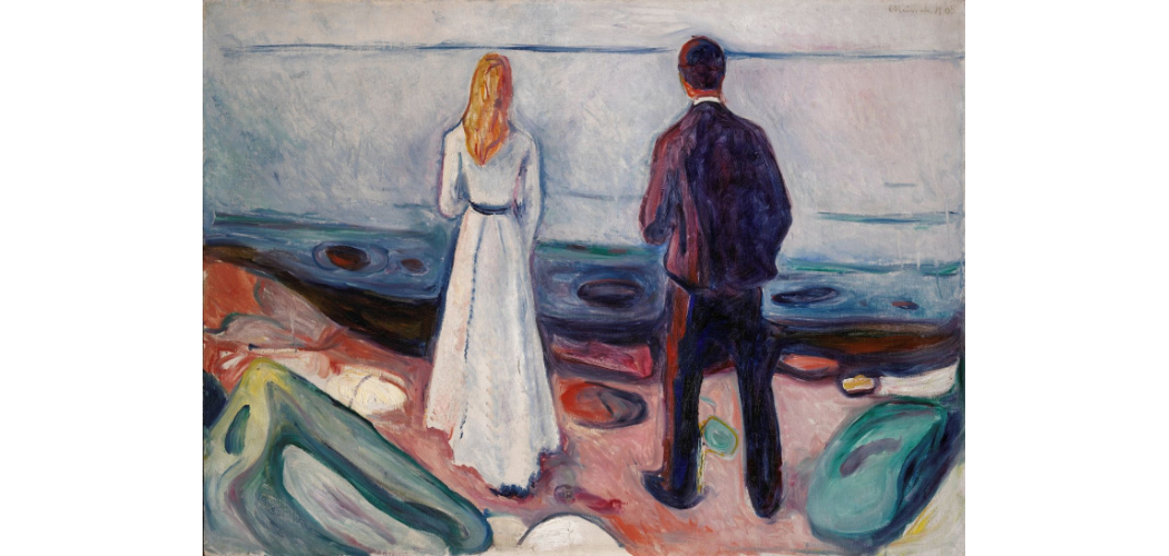 A félelem és a magány határozza meg az emberi kapcsolatokat is Munch képein. A festő kedvelt témája volt a férfi és nő közötti szinte áthidalhatatlan távolság. A kiállítás egyik fénypontja Munch „Két ember. A magányosak” című festménye. A képet 1928-ban a múzeum elődje, a Városi Művészeti Gyűjtemény vásárolta meg. A náci uralom alatt 1937-ben el kellett adni ezt az alkotást is, mivel elfajzott művészetnek minősült. Most, közel 90 évvel később, visszatért Chemnitzbe – kölcsönbe az Egyesült Államokból. Az alkotás egy fehérbe öltözött nőt és egy feketébe öltözött férfit ábrázol, ahogyan egy tengerparton állnak a nézőnek háttal. A két ember egymástól való fizikai és érzelmi távolsága magányos szemlélődésre kényszeríti őket.