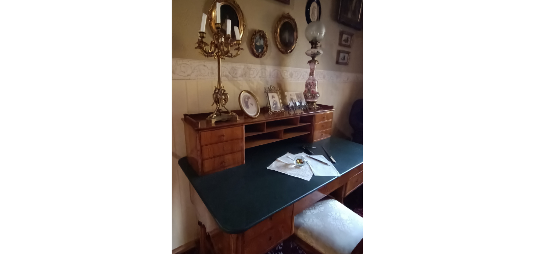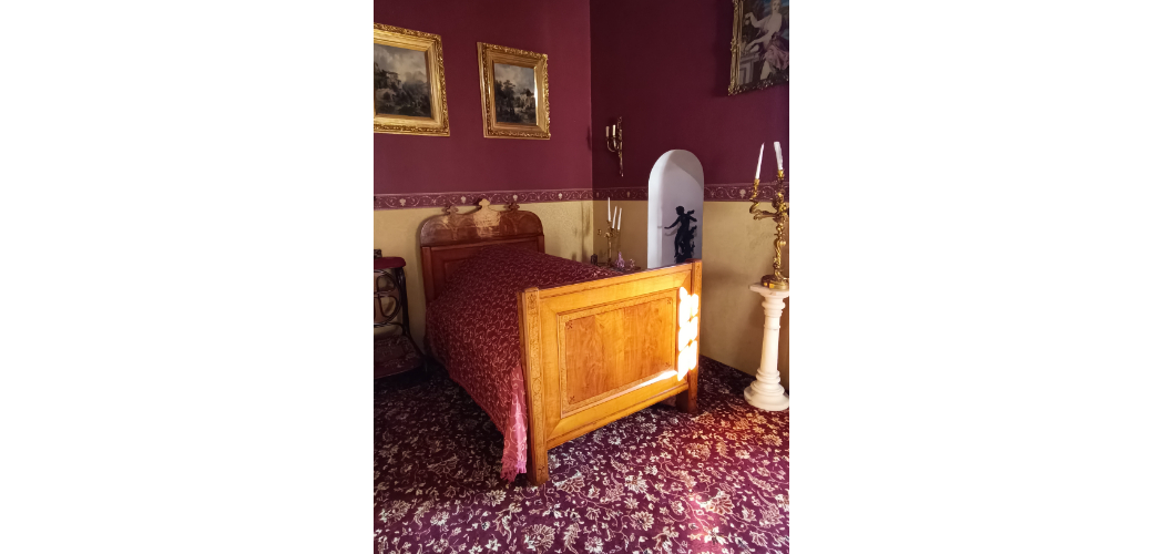 Ha tovább lépünk a szalon melletti sokkal kisebb, szerényebb olvasószobába, bepillantást nyerhetünk a hölgyek kizárólag olvasásra, levelezésre, naplóírásra használt szobájába. A 19. század végi hangulatból a 20. századba repít ez a kiállítási terem. A piciny helyiség szerény, biedermeier stílusú bútorai nem a szalonban tapasztalható zsúfoltságot tükrözik, a visszafogottság jellemző rá. A kastély utolsó lakóinak bútorai láthatók itt: báró Lipthay Béla felesége, Odescalchi Eugénia hozatta őket Romániából, Lovrinból 1944-ben, miután megvásárolták a Forgách család ősi kastélyát. Az utolsó terembe már csak bepillantani lehet, a belépés nem engedélyezett. A külön hálószoba jelzi, hogy a főúri és nagypolgári családok tagjai – néhány kivételtől eltekintve – elkülönülve töltötték az éjszakát. Az egyszemélyes ágy mellett imazsámoly is helyet kapott, míg a szoba másik sarkában a tisztálkodás és öltözködés elengedhetetlen kellékeit helyezték el a kiállítás tervezői.