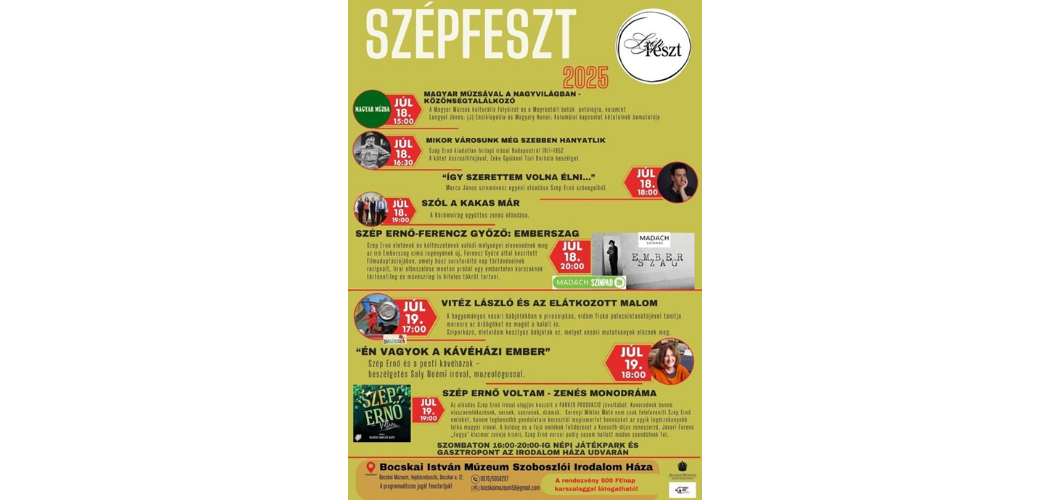 A Szoboszlói Irodalmi Szalon mellett az Irodalom Háza legnagyobb volumenű rendezvénye a SzépFeszt irodalmi fesztivál volt, amelyet 2025 júliusában rendeztek meg. A kétnapos esemény célja az volt, hogy tovább erősítse Szép Ernő helyi kultuszát, és az életművet, valamint annak szellemi-kulturális közegét közelebb hozza a közönséghez. A fesztivál programjai jól példázták azt a törekvést, hogy az irodalom több művészeti ágon keresztül, változatos formákban váljon befogadhatóvá.