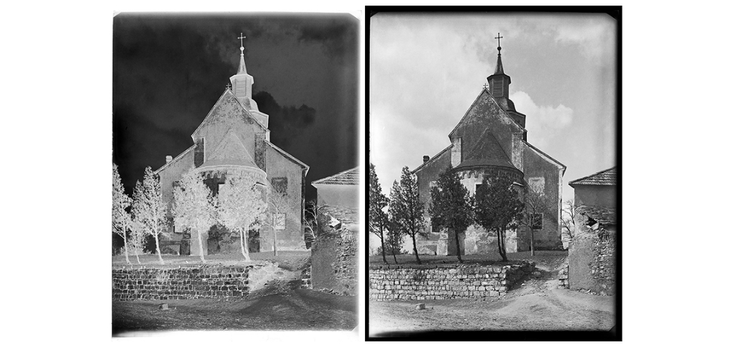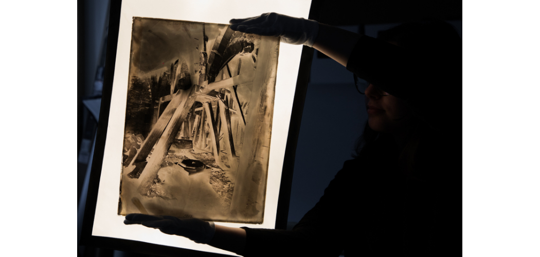 Műtermi fotózás a Fotótár egyik legrégebbi üveglemezéről. Fotó: Nyirkos Zsófia, 2024